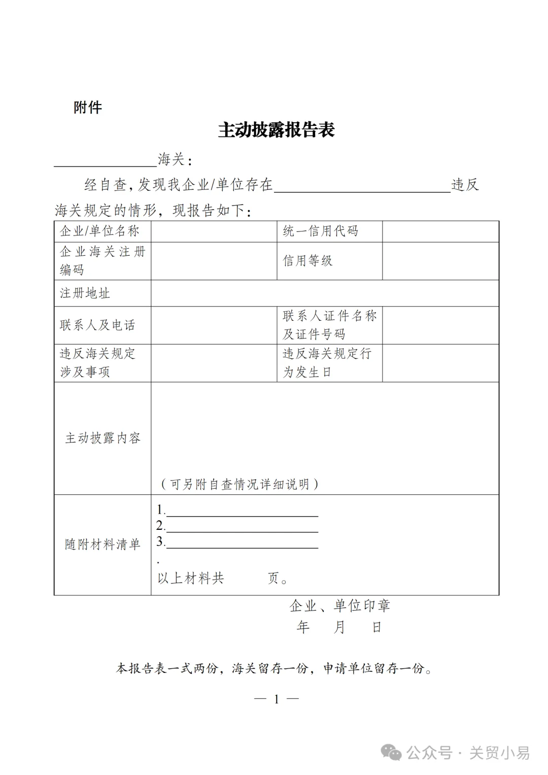 五、进出口企业、单位向海关主动披露的,需填制《主动披露报告表》(见附件),并随附账簿、单证等材料,向报关地、实际进出口地或注册地海关报告。