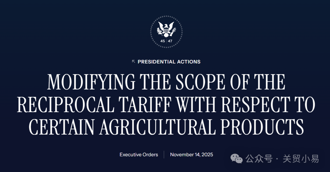 美东时间2025年11月14日,白宫官网发布特朗普签署的行政命令,修改了4月2日的对等关税政策,该命令豁免了237种食品和农产品的进口关税,涉及咖啡、茶叶、香蕉等食品。
