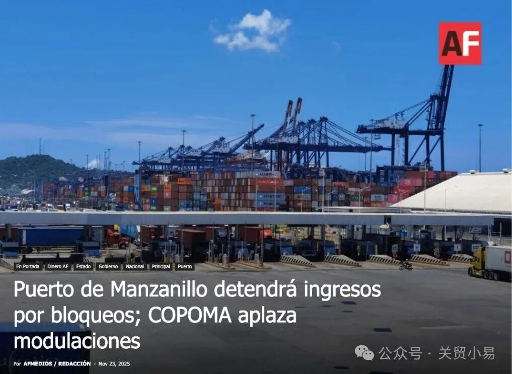 墨西哥最大港口“曼萨尼约港”也因罢工而宣布暂停接收货物。
