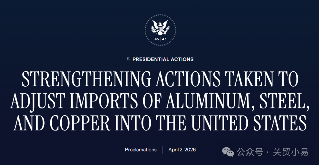 美东时间4月2日,美国总统特朗普签署公告,对美国钢铁、铝和铜的进口关税进行了重要调整,简化合规程序,并避免进口申报价值被低报的情况。