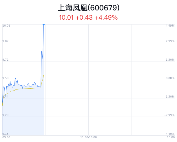 05月06日,上海凤凰(600679)股价大幅上涨,截至10点27分,上海凤凰上涨5.01%,报10.06元/股,突破10元整数关口,成交6075万元,换手率2.02%。