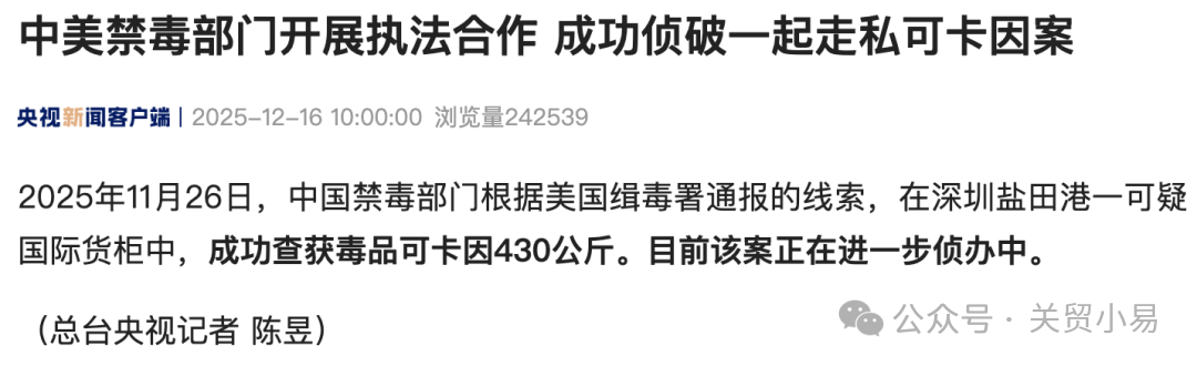 其实早在12月5日,公安部新闻发言人就已经公开回应中美禁毒合作进展!