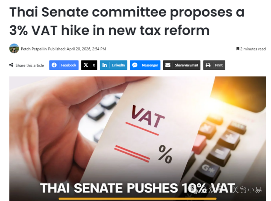 泰国或加税!电商平台代扣卖家2%所得税,VAT提高至10%,还有20%企业所得税